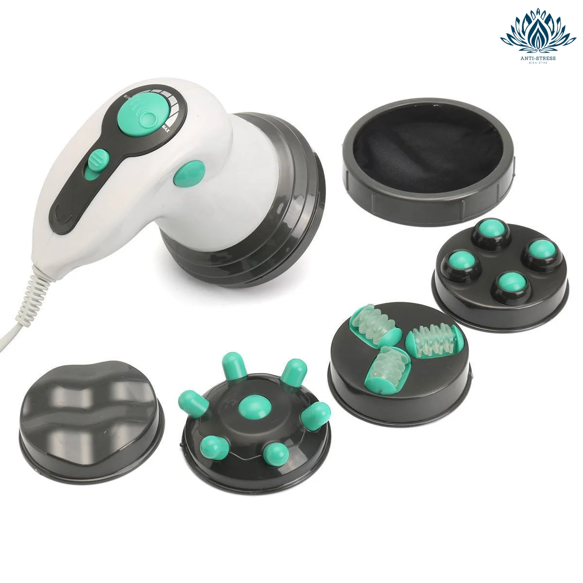 Cet appareil de massage permet de prendre soin du corps en le relaxant et en faisant bouger activement les graisses saturées stockées au niveau des cuisses, des fesses et du ventre afin de permettre leur élimination rapide en décollant la cellulite et retrouver un corps svelte et une silhouette minceur. Il permet également grâce à ces cinq têtes modulables de soulager les douleurs et apaiser les tensions nerveuses dues au stress et à l’anxiété.