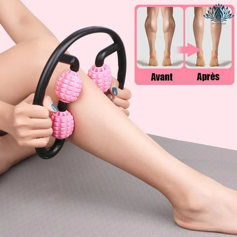 Découvrez ce nouvel appareil de massage pour les jambes qui s’affiche avec un design ergonomique révolutionnaire et pratique. En forme de volant, l’appareil de massage est constitué de deux branches sur lesquelles des balles à picots fermes, pour un massage en profondeur. Le principe est simple glissez l’appareil sur sa jambe, les quatre balles, de part et d’autre de la jambe, vont exercer une pression pour un massage profond. Vous pourrez faire tourner l’appareil autour de la jambe dans un sens ou dans l’autre par des mouvements de rotation jusqu’à 360°. Cet appareil de massage pourra être aussi utilisé pour les bras avec le même principe enveloppant et massant.