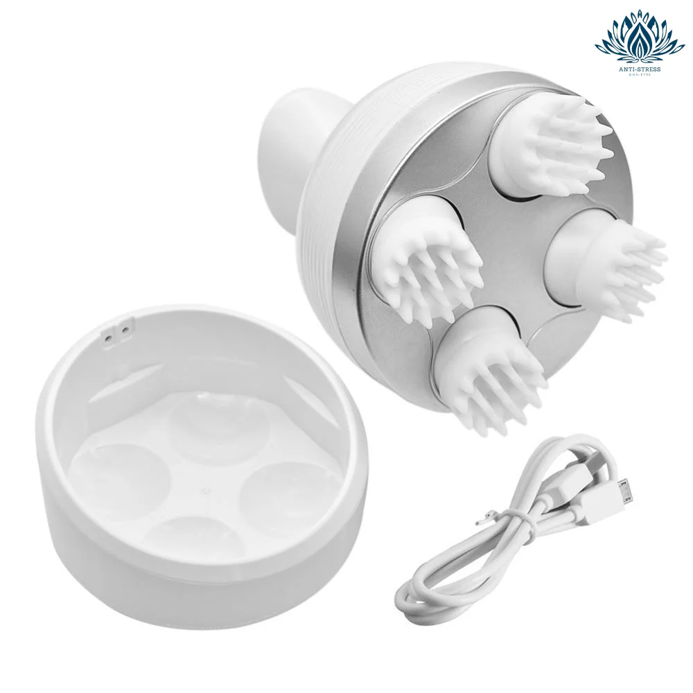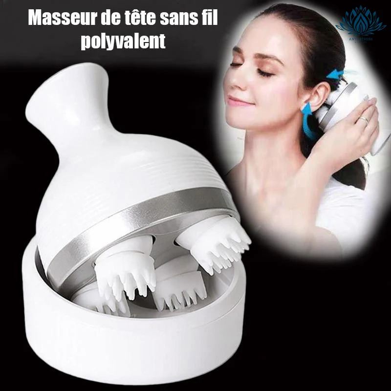 Waterproof, cet appareil massage tête révolutionnaire, avec ses quatre têtes amovibles, est idéal pour dénouer et relâcher les tensions accumulées. En plus de ses vertus apaisantes, ce masseur sans fil prévient la perte de cheveux par un massage profond et vibratoire.