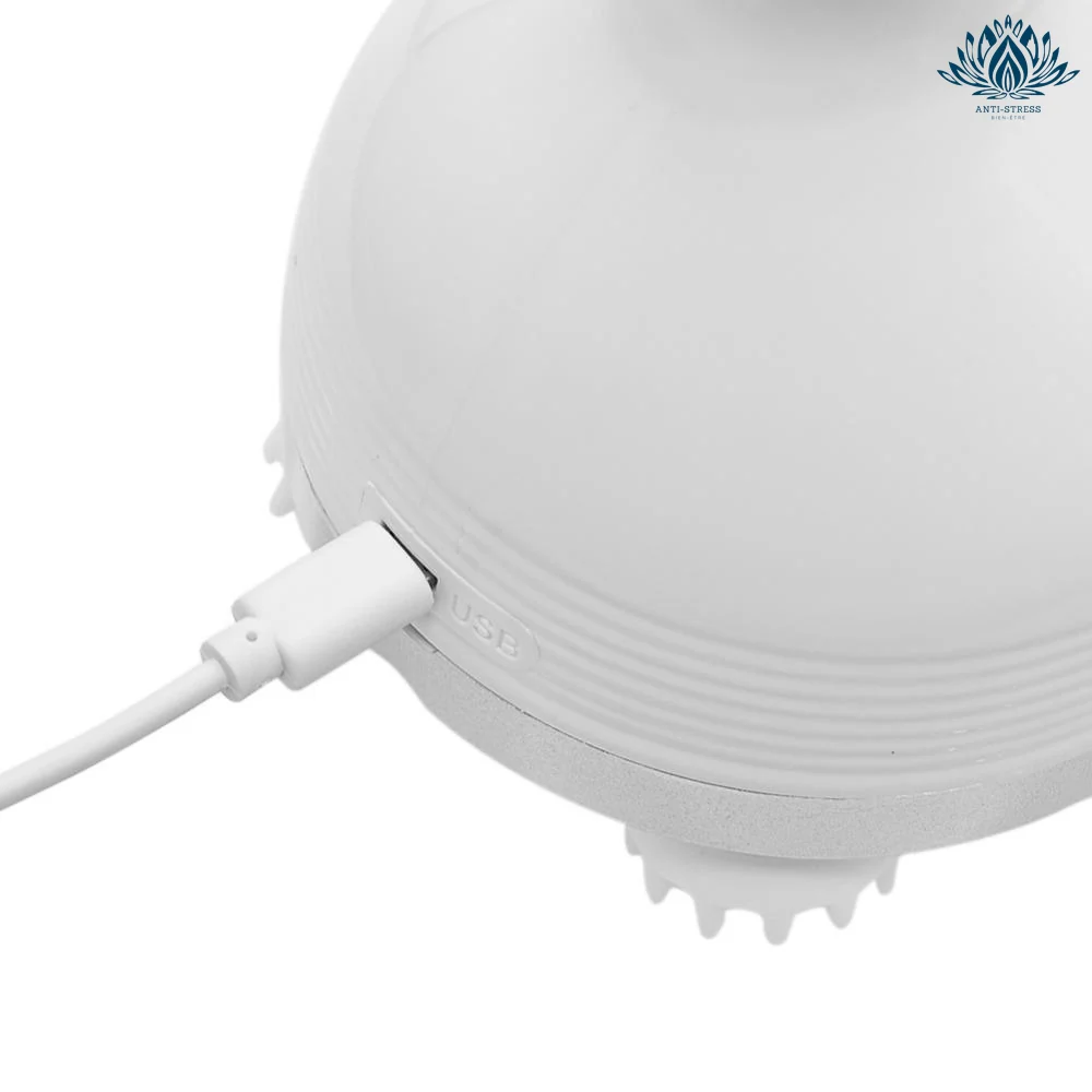 Cet appareil de massage tête, très design, possède quatre têtes de massage rotatives, chacune constituée de longs picots flexibles en silicone pour un massage global, doux et efficace. Cet appareil de massage tête vous permet de prendre soin de votre tête et de votre corps et de vous débarrasser de vos douleurs musculaires. Agissant sur les maux de tête et les tensions nerveuses et musculaires, il aide également à détendre les muscles endoloris tels que le cou ou les épaules, le dos, les jambes et aide à stimuler la circulation sanguine et les énergies. Grâce à ses fonctions réglables à deux vitesses et directions, vous pourrez choisir une intensité douce ou rapide en fonction de vos besoins. Son format permet une utilisation mobile grâce à sa batterie rechargeable : vous pourrez emporter votre appareil de massage tête avec vous en voyage ou lors de vos longs trajets en voiture pour dénouer vos tensions nerveuses et physiques et soulager vos maux de tête. Son design ergonomique permet une manipulation confortable et une agréable prise en main pour une relaxation faite par soi-même, à tout moment. Le massage du cou apporte une relaxation qui permet d’être plus décontractée et prévient des troubles musculaires notamment au niveau du dos.