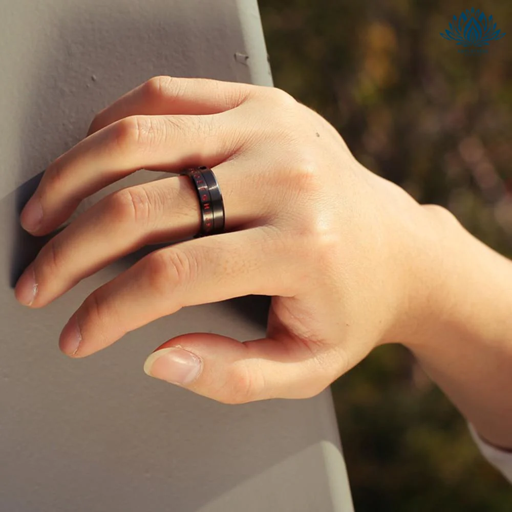 Design, noir et rouge, cet anneau en acier inoxydable est un bijou antistress incontournable à porter au doigt pour lutter et agir efficacement contre le stress oxydant en toute circonstance.