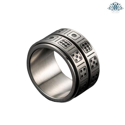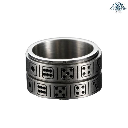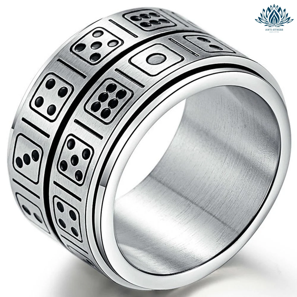 Lancez vos dés, ou plutôt faites les tourner, alignez vos chiffres favoris et surmonter votre stress grâce à cet anneau élégant et design en acier inoxydable à porter au bureau, en cours ou à la maison.