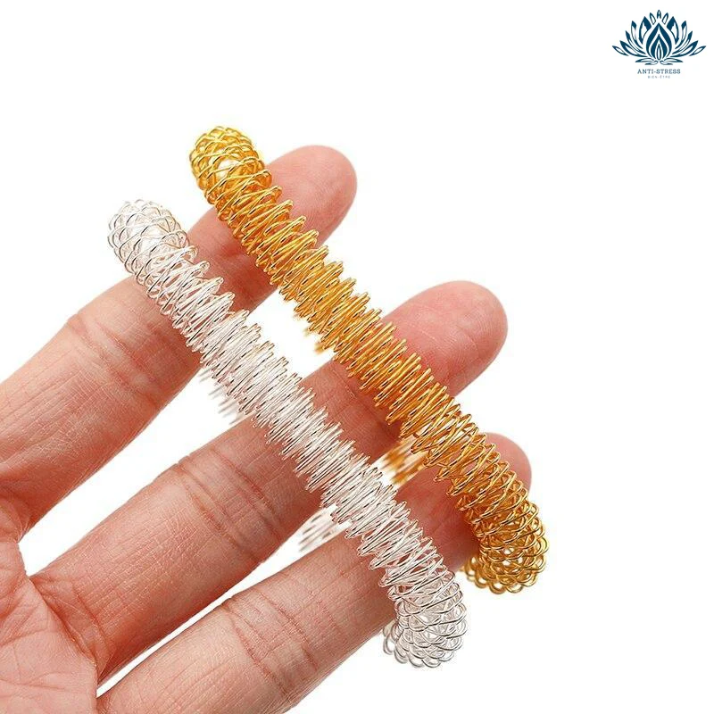 Ce bracelet d’acupuncture extensible se glisse à votre poignet pour le massage des mains, des poignées, des avant-bras jusqu’aux coudes. Ce bracelet est constitué d’un fil torsadé en forme triangulaire pour stimuler les points de réflexologie palmaire. Le matériau est agréable sur la peau, les pointes offrent des pressions douces sans gêne aucune. Ce bracelet est un bijou original qui se porte tous les jours et qui s’adapte à toutes vos tenues. Couleur or couleur argent, il saura agrémenter d’un style simple et original votre style décontracté ou chic. Extensible, il s’adapte à tous les tours de bras. Le principe de ce bracelet d’acupuncture est simple. Ces effets se font sentir quand le bracelet est positionné sur votre bras ou vous pourrez aussi le faire glisser sur le long de votre bras pour vous déstresser quand le stress vous donne une sensation d’étouffement. Positionnées sur votre bras, les petites pointes vont stimuler les points d’acupuncture avec la pression statique mais stimulante. Sur votre bras, le bracelet va vous faire bénéficier de tous ses bienfaits tout au long de la journée.