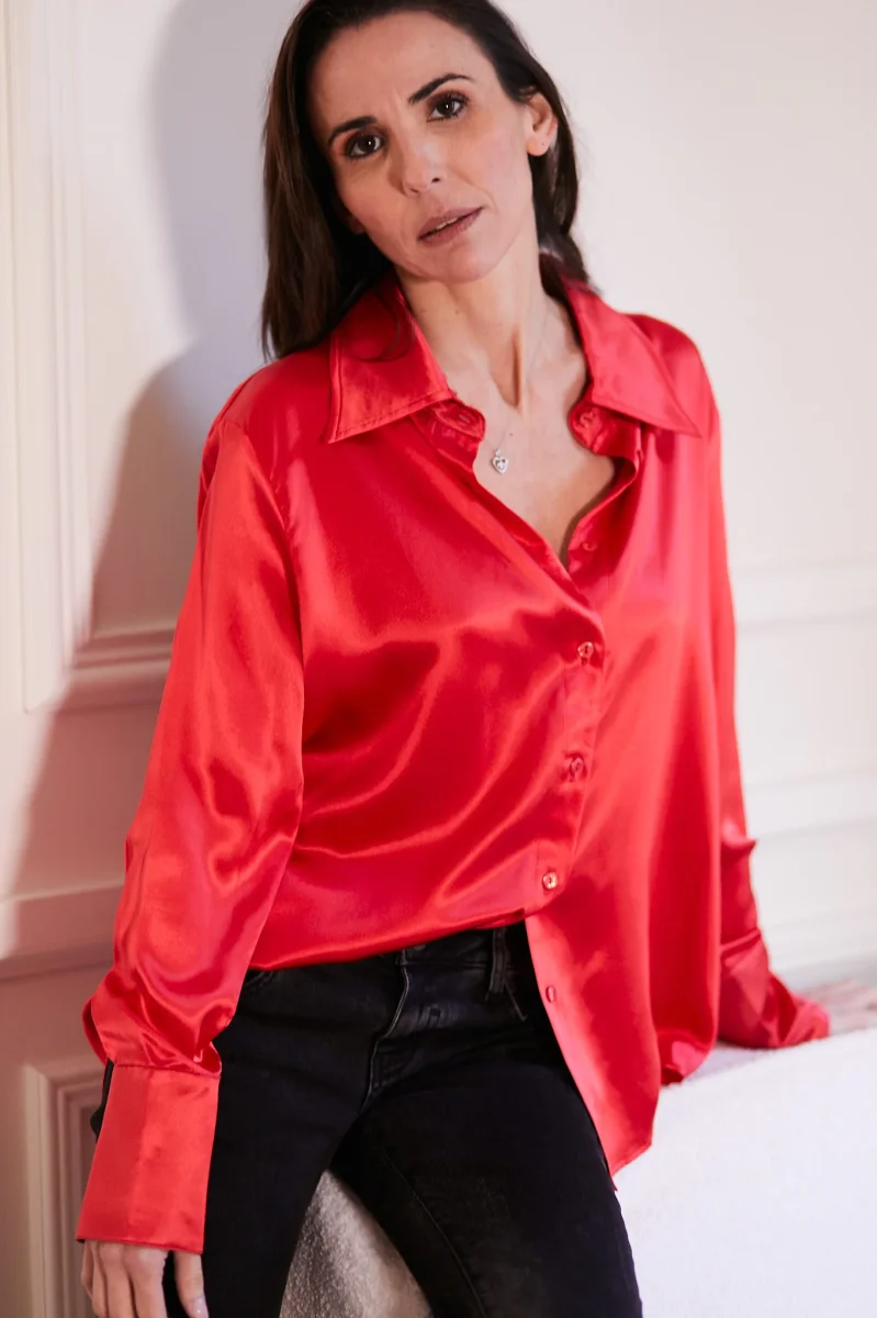 Chaque couleur met en valeur la noblesse de la soie et la coupe fluide et ample de la chemise Léa.