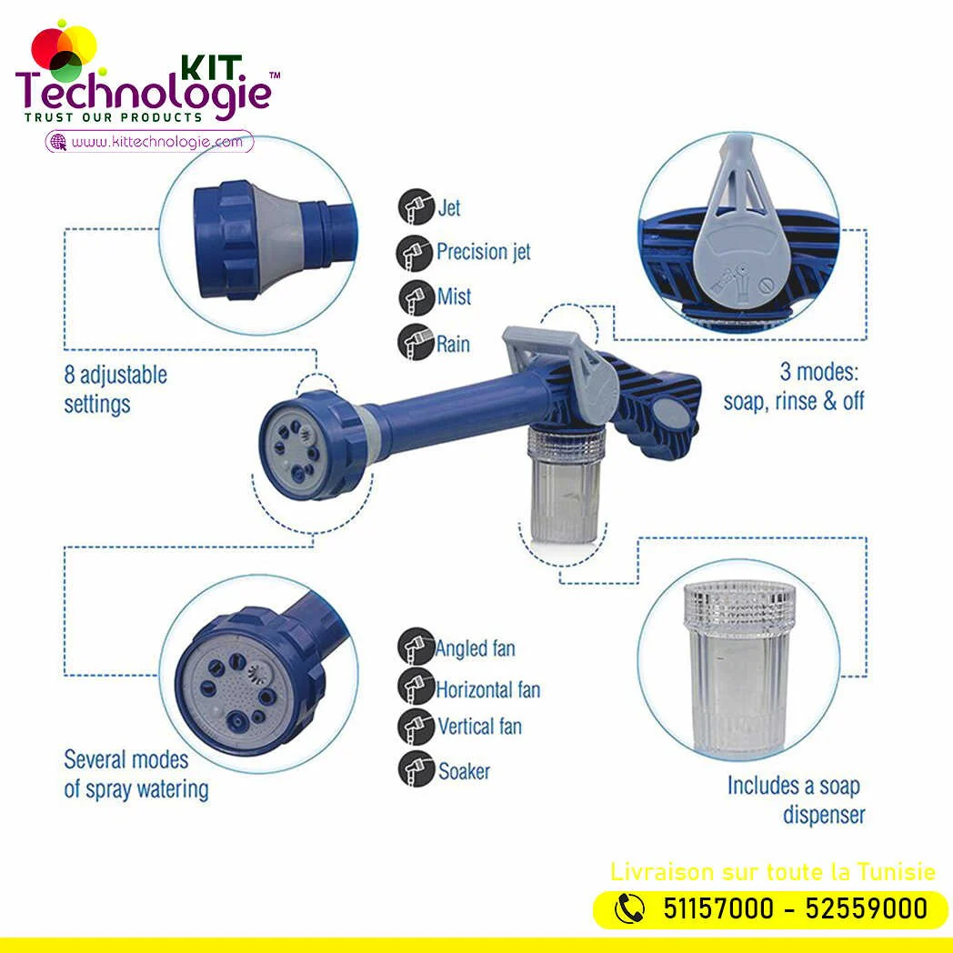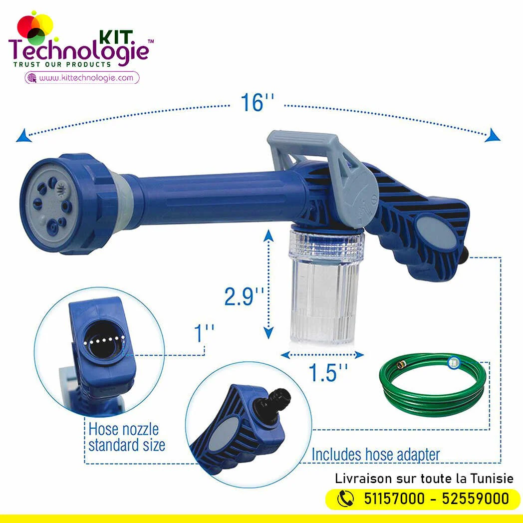 Support de Tuyau 8en1 · Pas d’électricité ou de moteur requis · Nettoyez votre maison, votre voiture, votre allée, puis arrosez doucement vos plantes · Idéal pour le nettoyage des fenêtres et des écrans · Buse multifonctionnelle · Parfait pour tous les travaux de nettoyage extérieurs · Vous pouvez attacher à n’importe quel tuyau standard […]